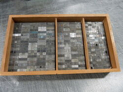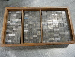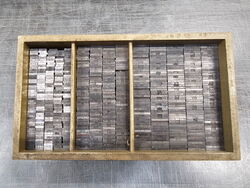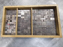 Unentbehrlich für den Schriftsatz. Und am liebsten legt der Bleisatz-Schriftsetzer Neuware in seine Setzkästen, denn sauberer und sortierter Ausschluß erleichtert die Satzarbeit.