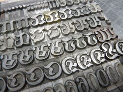 Bei dieser Schrift sind Schriftkünstler, Erstguß und Gießerei uns nicht bekannt - sie läuft bei uns unter Unbenannte Fraktur Nr. 61. Die Fotos mögen Auskunft geben.Bei diesem Schriftsatz ist Minuskel k nicht vorhanden - ck ist vorhanden.