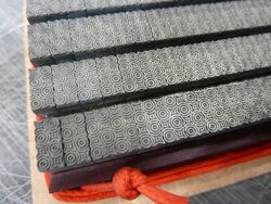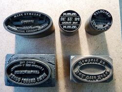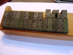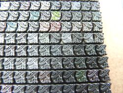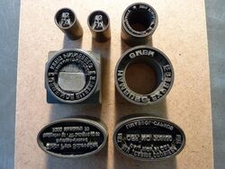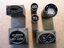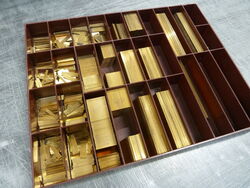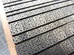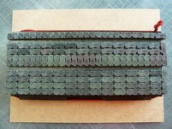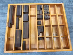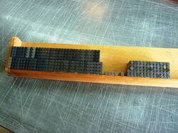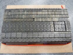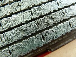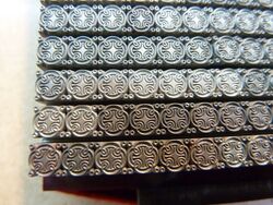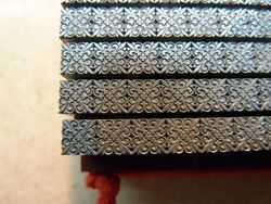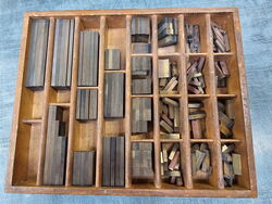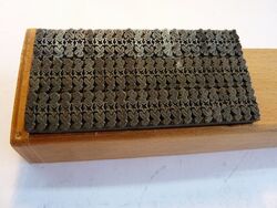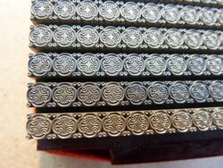Teilweise aus Messing, mit Bleisatz, teilweise in Blei geklotzt.