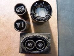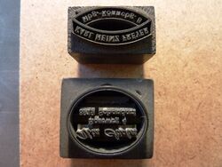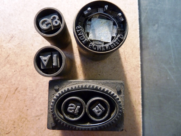 Teilweise aus Messing, mit Bleisatz, teilweise in Blei geklotzt.