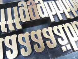 Dieser Messingschriftsatz ist komplett und umfaßt 137 Lettern.