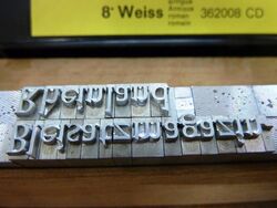 Die Schriftkassette können wir mit der gußfrischen Folio dreiviertelfett 16p originalverpackt anbieten.