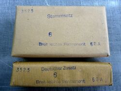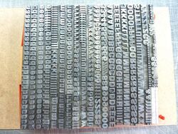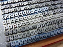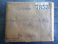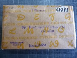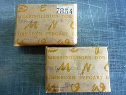 Diese Brotschrift ist sortiert nach Buchstabe, Ziffer usw. „eingetütet“ und läßt sich gut in den Setzkasten einlegen.